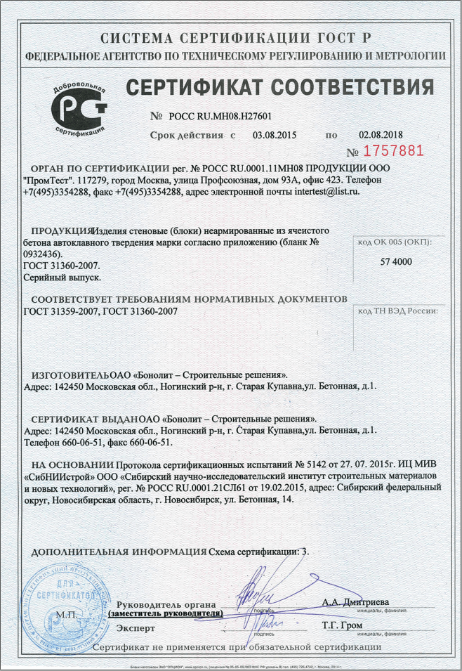 Сертификаты продукции Бонолит